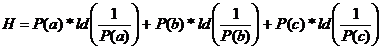 Somit ergibt sich der gesamte Informationsgehalt der Nachricht mit den Zeichen a, b und c mit: