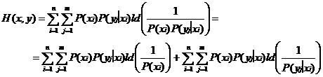Elimineirt man in der letzten Gleichung die bedingte Entropie H(y|x), dann erhält man eine weitere Beziehung zur Berechnung der Transinformation, nämlich